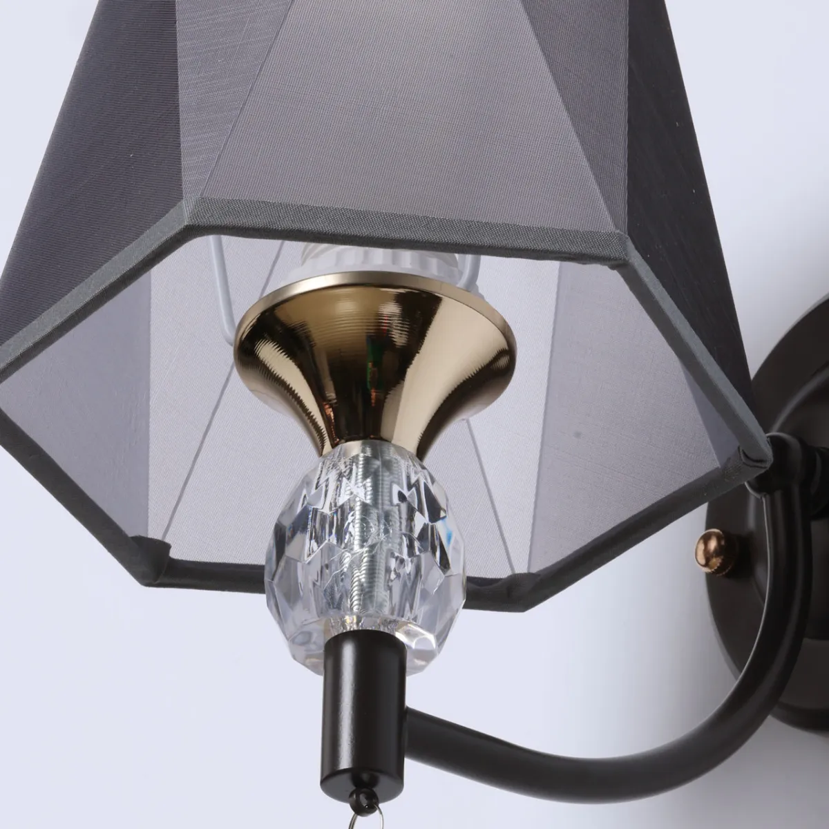 Основание/ металл/ золото, кофе Абажур/ акрил, текстиль/ прозрачный, серый Декор/ хрусталь/ прозра