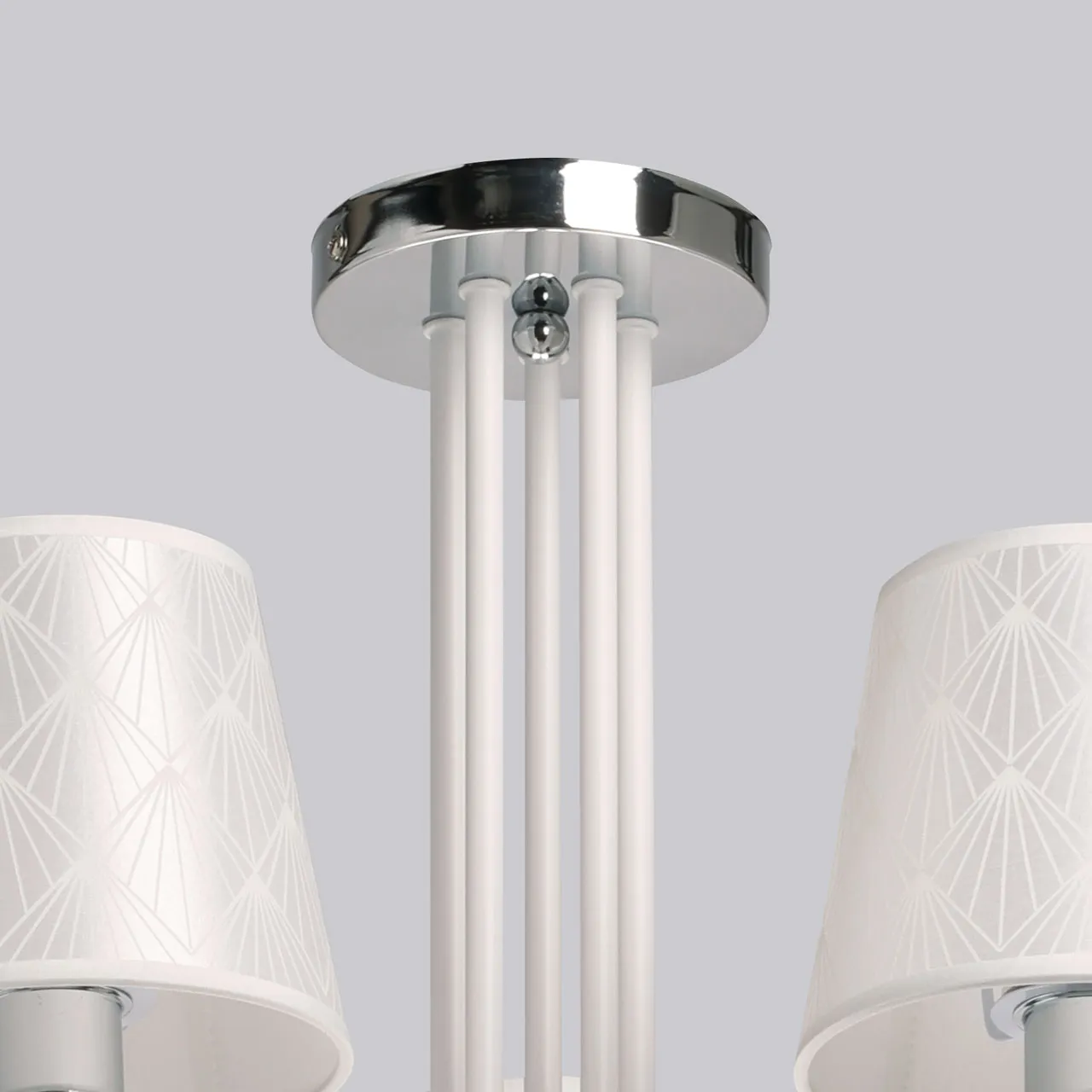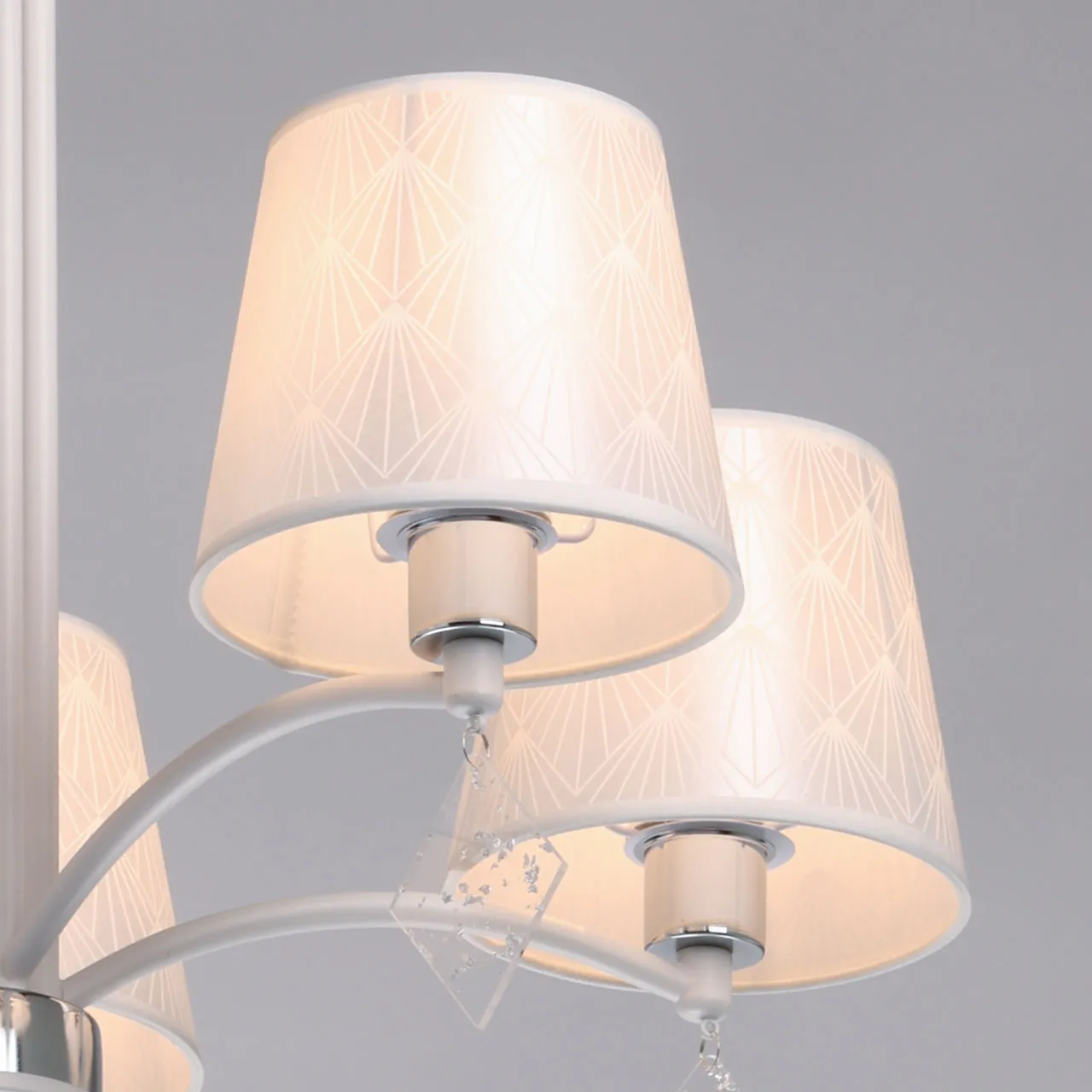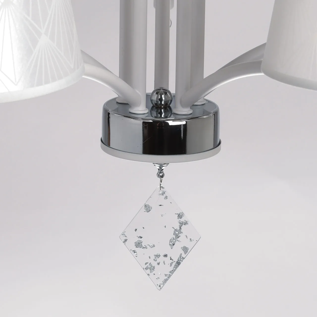 Основание/ металл/ белый, хром Абажуры/ акрил, текстиль/ прозрачный, белый Декор/ акрил/ прозрачны