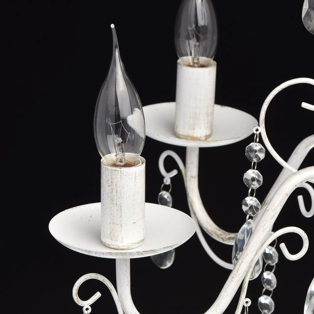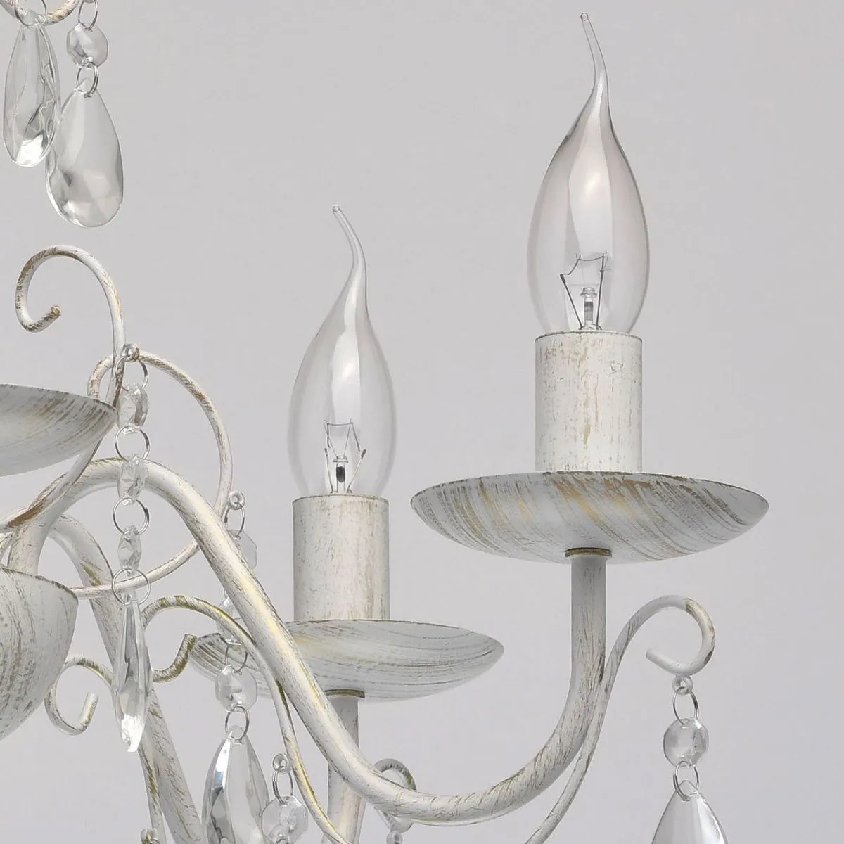 Металлическое основание белого цвета с золотистой патиной. Декор: декоративное стекло.