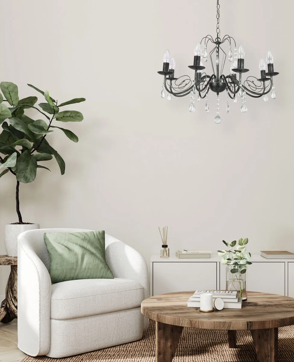 Основание/ металл/ черный, серебро Декор/ хрустальное стекло/ прозрачное