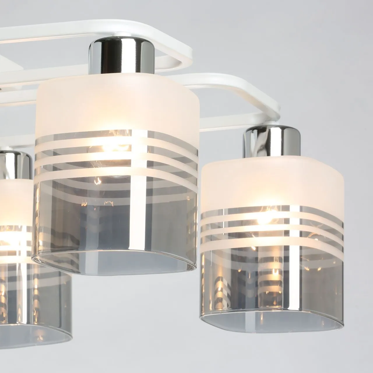 Основание/ металл/ белый + хром Плафон/ стекло/ белый + дымчатый